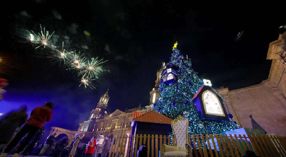 En el marco del aniversario de la declaración del Centro Histórico de Arequipa como Patrimonio Mundial, el vicepresidente del Directorio de Caja Arequipa, Pablo Manrique, y los regidores de la comuna arequipeña, se dirigieron al árbol ubicado junto al frontis de la Catedral para proceder con el encendido. Rodeados de autoridades, medios de comunicación, turistas y numerosas familias locales, dieron oficialmente inicio a las festividades navideñas en la ciudad.
