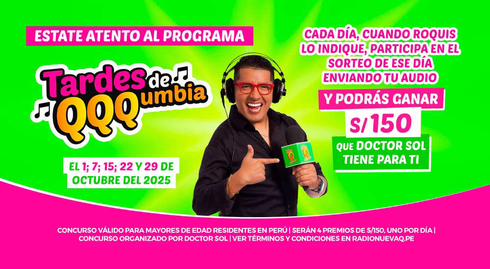 Se debe estar atento a la convocatoria que realice los días 1,7, 15, 22 y 29 de octubre del 2025 el locutor en el programa “Tardes de QQQumbia” que se difunde en Nueva Q de 5 pm a 7pm.