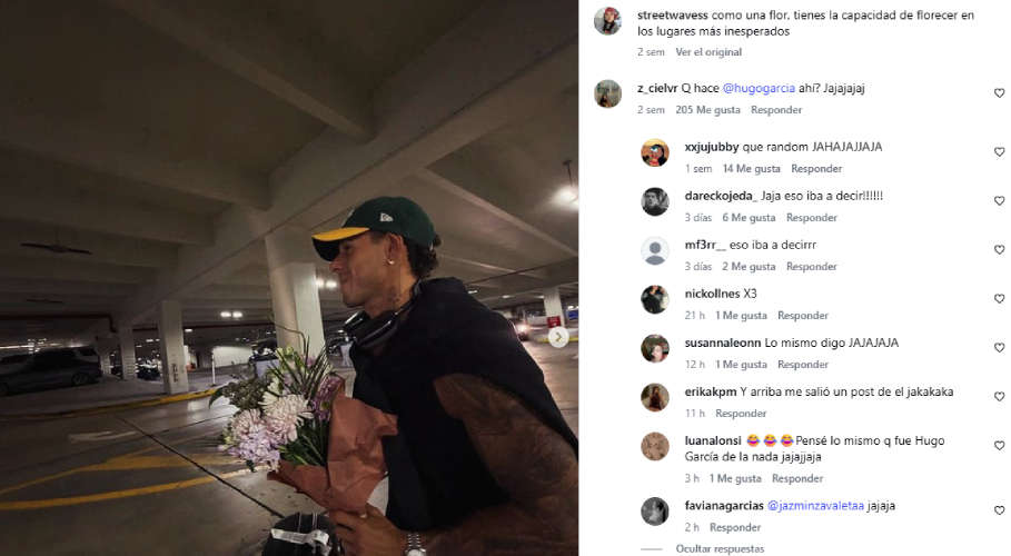 En la imagen que compartió la usuaria Streetwavess se puede ver a Hugo García sonriendo con un ramo de flores. Sin embargo, esta es la única instantánea del modelo peruano, quien al parecer se encontraba llegando de viaje.