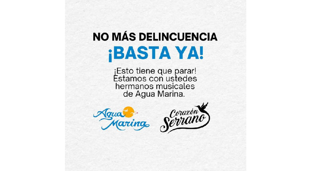 Por su parte, Hermanos Yaipén también expresó su preocupación. “¡Basta ya! Por nuestros hermanos, por la música, por el Perú. Nuestra solidaridad y apoyo absoluto con nuestros hermanos de Agua Marina.