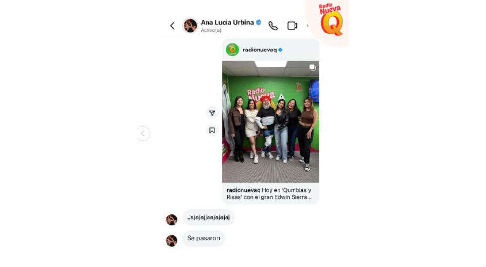 Estas imágenes fueron compartidas en las redes sociales oficiales de Radio Nueva Q. Lejos de molestarse, Ana Lucía Urbina aprobó y tomó la imitación de Edwin Sierra con mucho humor. “Jajajajaja…se pasaron”, expresó.