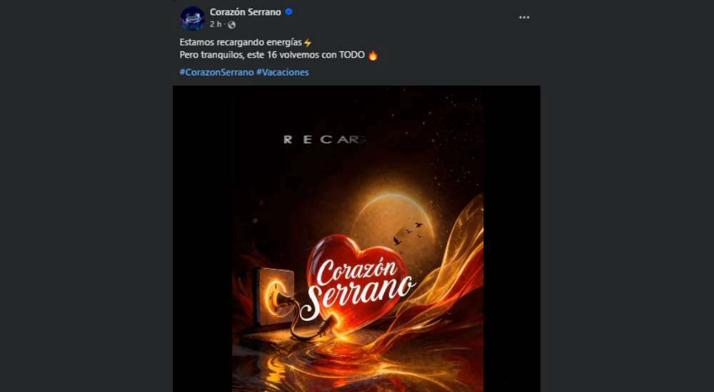“Estamos recargando energías. Pero tranquilos, este 16 volvemos con TODO”, fue el mensaje publicado por Corazón Serrano en sus redes sociales. Con ello, la agrupación confirmó que todos sus integrantes se tomarán unas breves vacaciones.