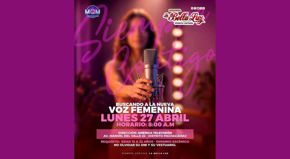 El casting presencial de La Bella Luz se realizará el lunes 27 de abril a las 8:00 a.m. en las instalaciones de América Televisión, ubicadas en Pachacámac. La orquesta recomienda llegar temprano y prepararse para demostrar todo el talento.